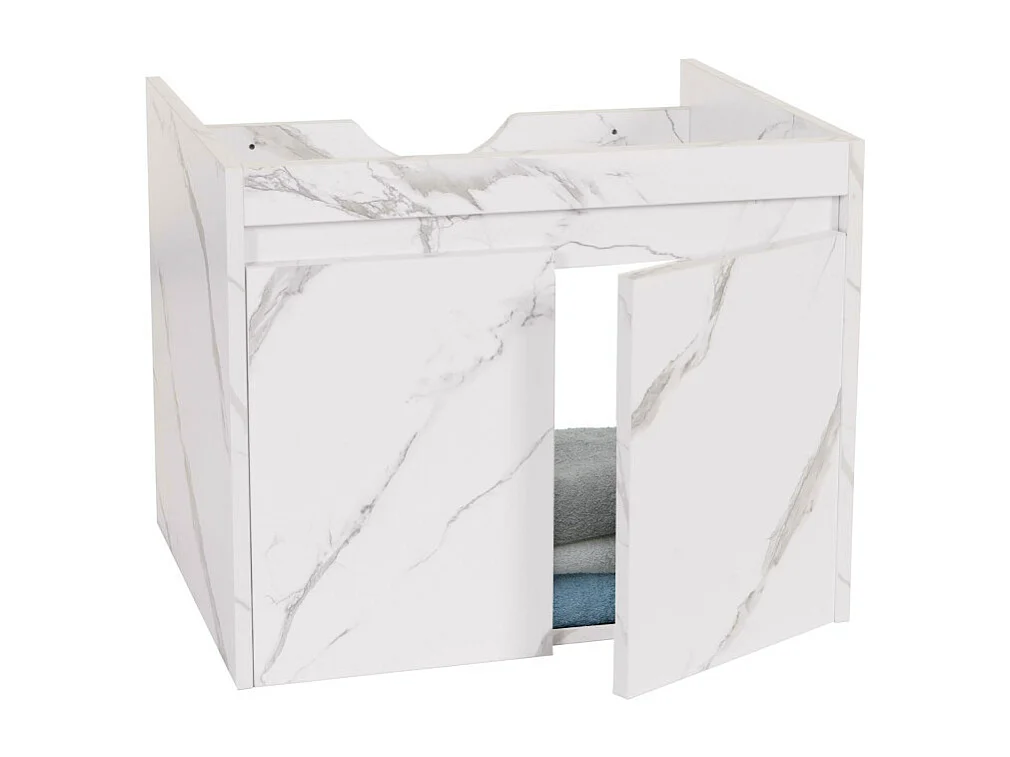 Meuble sous-lavabo HWC-L86, meuble sous-lavabo de salle de bains, MVG mélamine 2 portes 48x59x46cm - aspect marbre blanc