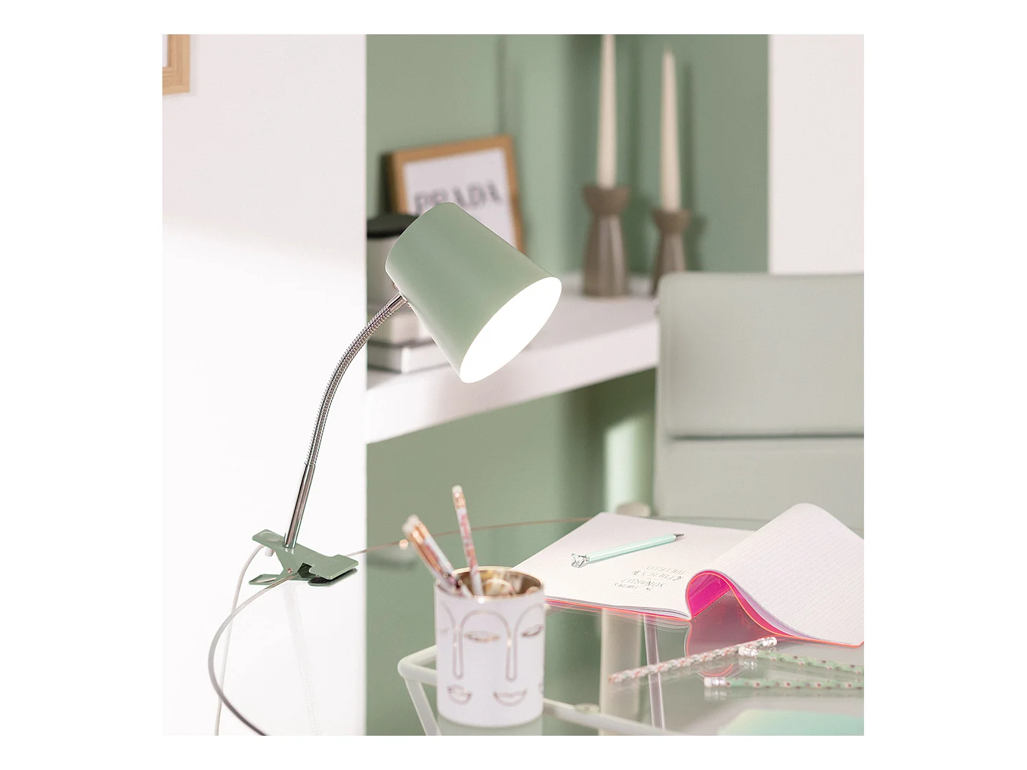 Lampe de Bureau Flex Métal Delavan avec Pince Vert Céladon