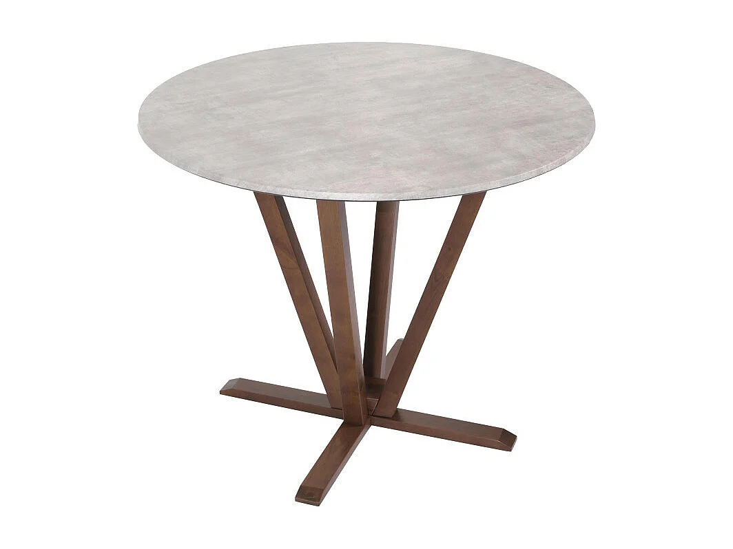Table de bistrot HWC-M56, table de salle à manger, bois massif HPL stratifié mélaminé Ø92cm, aspect béton, piétement bru