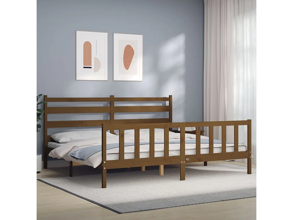 Cadre de lit sans matelas marron miel 200x200cm bois pin massif