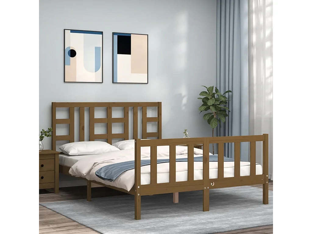 Cadre de lit sans matelas marron miel bois massif