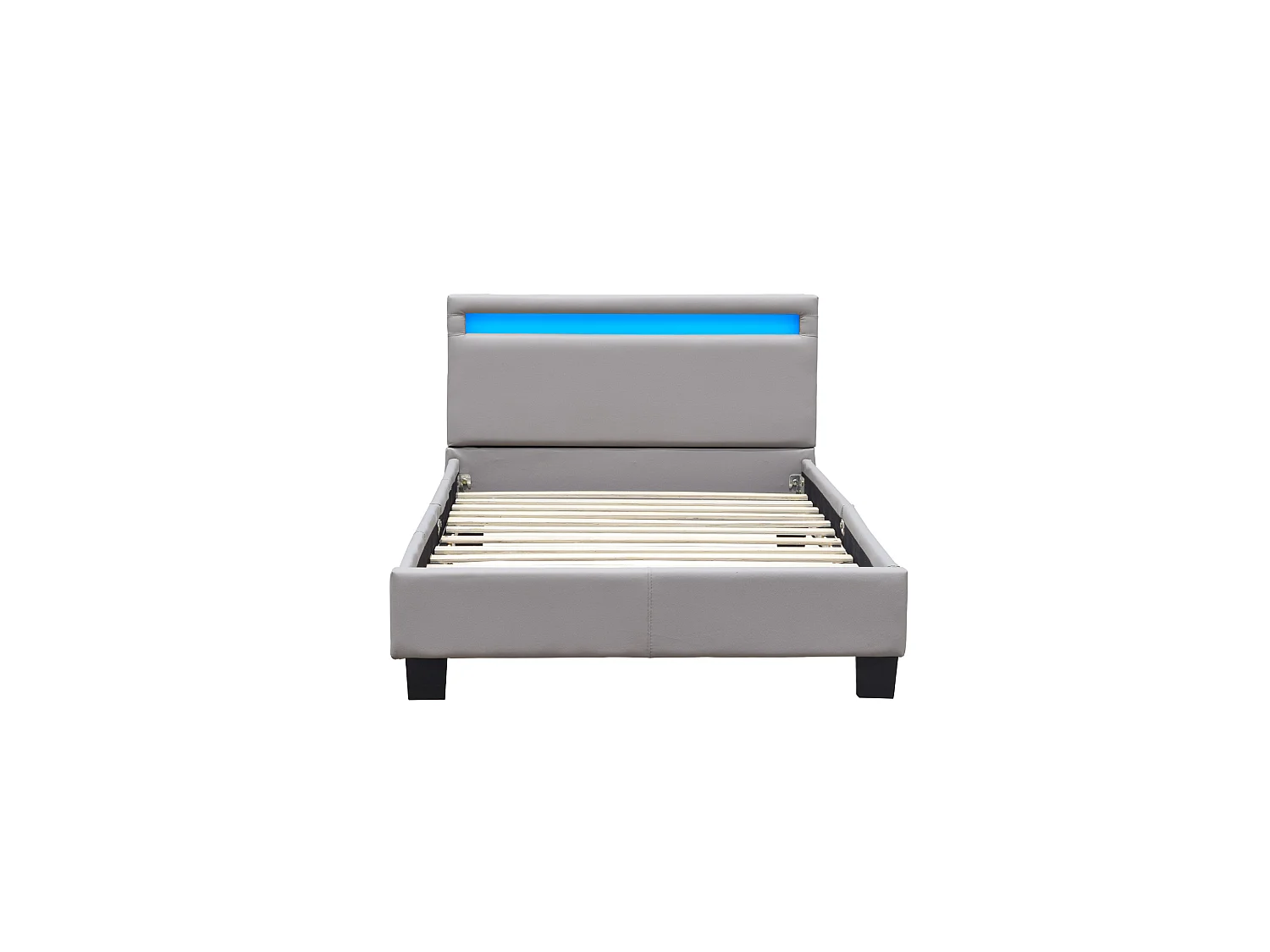 angel - Solide et Confortable Lit 90x200 avec Sommier + Tête de Lit avec Eclairage LED Couleur GRIS + Pieds en 10 cm pour matelas en - 13 Lattes - revetement PVC Simili facile d'entreti