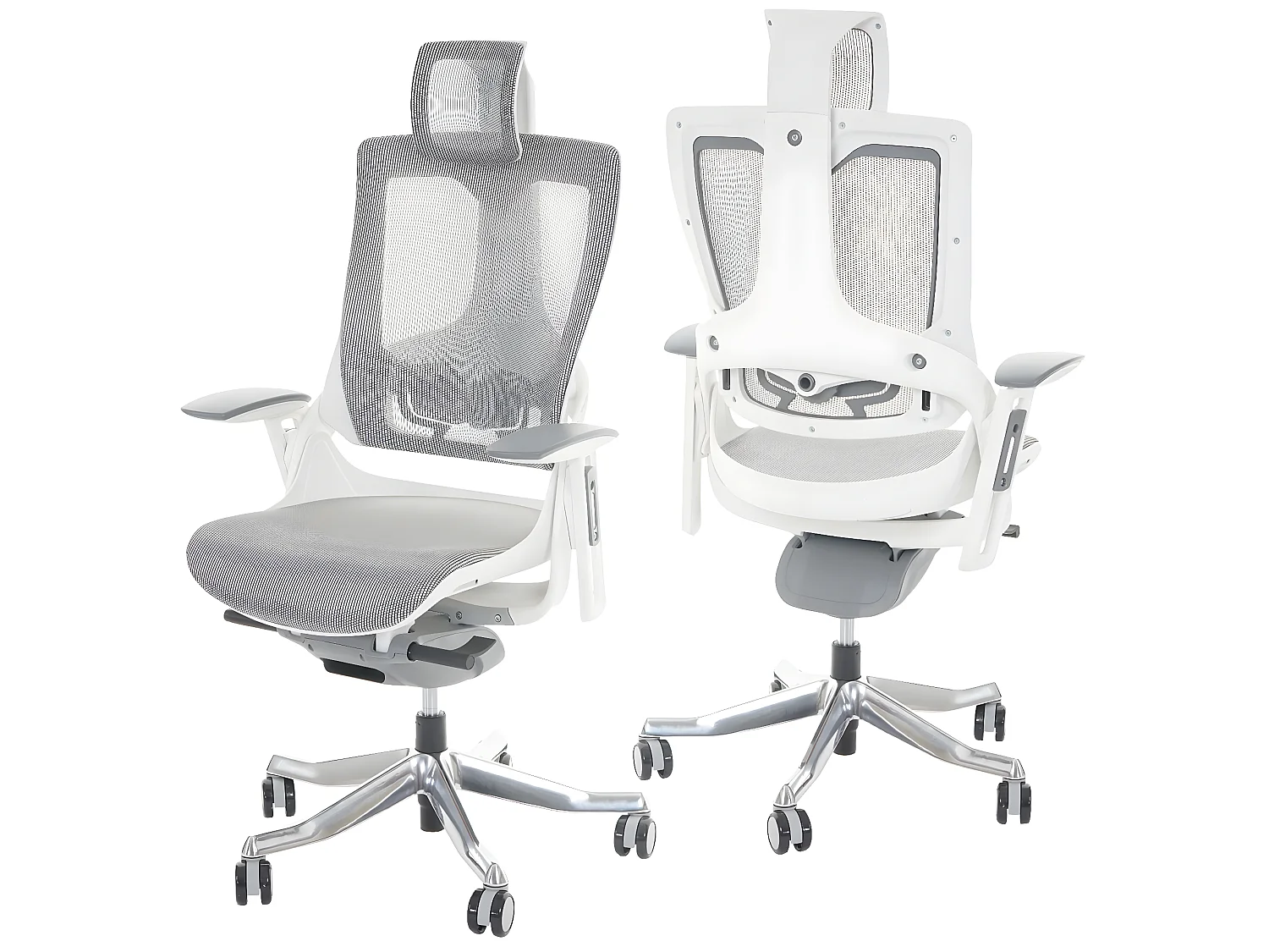 Fauteuil de bureau MERRYFAIR Wau 2, chaise pitovante, rembourrage / filet, ergonomique - blanc/gris