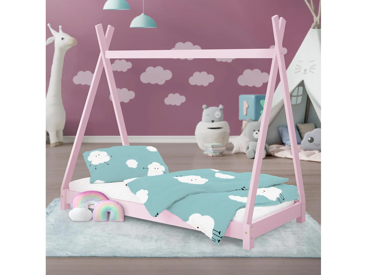 Lit enfant 80x160 cm Rose Bois Maison d'Enfants Lit en Bois Cadre de Lit Indien